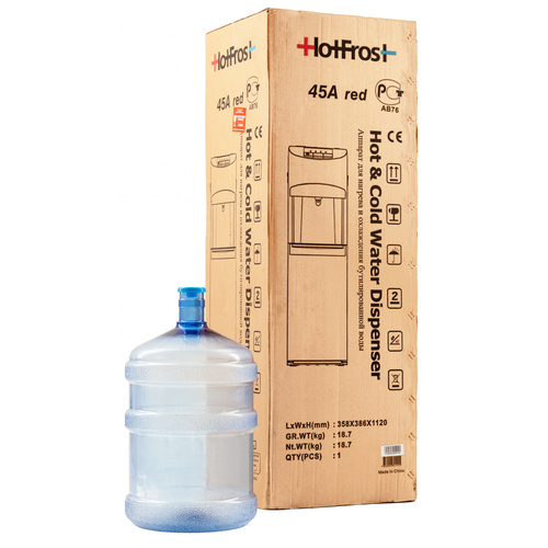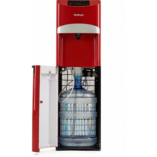 Познакомьтесь с HotFrost 45A Red — это еще одна популярнейшая модель с функцией нижней загрузки емкости с водой. Эта модель не только идеально впишется в интерьер любой стилистики, но и станет к нему ярким дополнением за счет своего красного цвета. Благодаря нижней загрузке бутыли емкость с водой надежно скрыта внутри аппарата, то есть, она не будет привлекать к себе внимание и цеплять ваш взгляд.