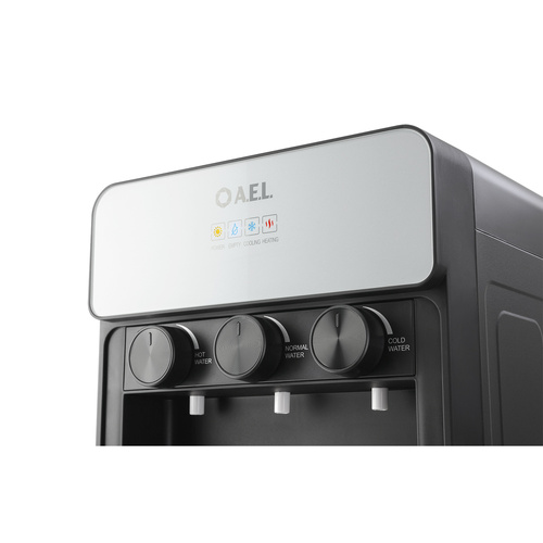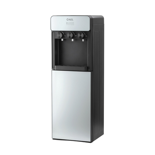 Кулер для воды LC-AEL-825a black/silver - напольный кулер с нижней загрузкой бутыли, с компрессорным охлаждением и поворотными кранами подачи воды.