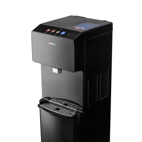 Управление кулером происходит через сенсорные (электронные) кнопки, имеющие соответствующую цветовую индикацию, упрощающую понимание, какая функция в кулере активирована. Подача холодной воды может осуществляться, как через сенсорную кнопку, так и через использование бесконтактного датчика.