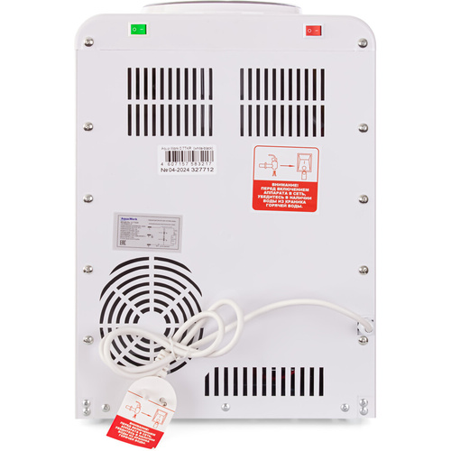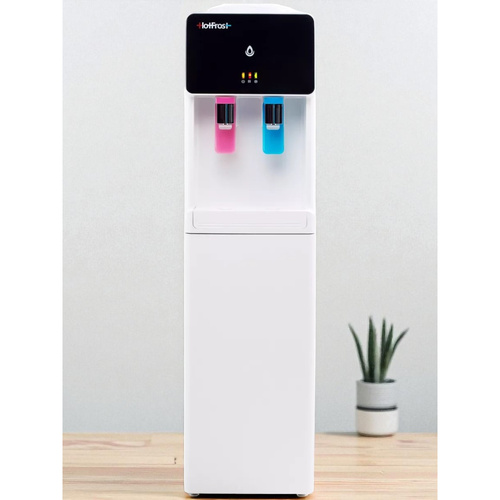 Черная глянцевая лицевая панель выгодно контрастирует с основным снежно-белым цветом диспенсера. На этой панели находятся индикаторы-светодиоды, которые будут всегда держать вас в курсе происходящего с аппаратом: нагревает ли он воду, происходит ли охлаждение. Яркие огоньки светодиодов видны как в полной темноте, так и при ярком солнечном свете.