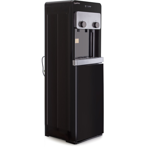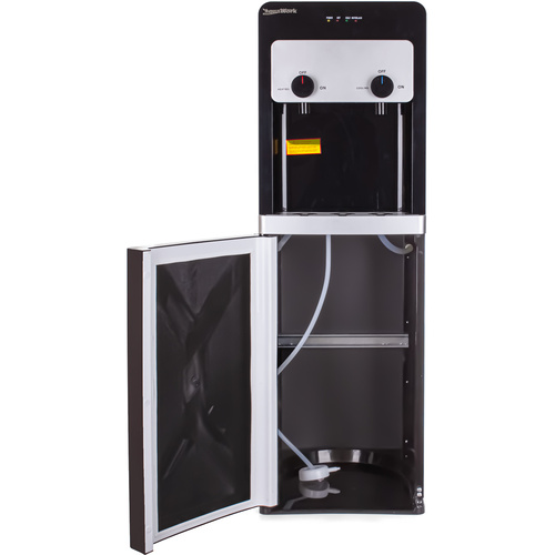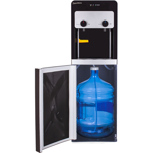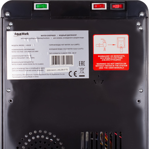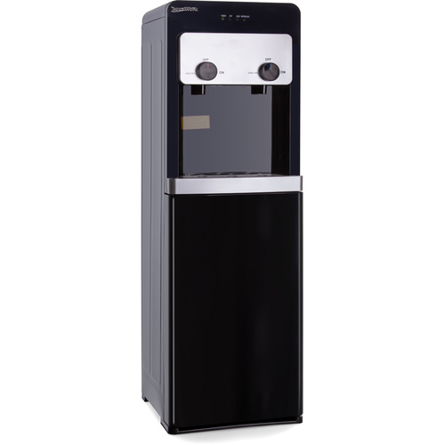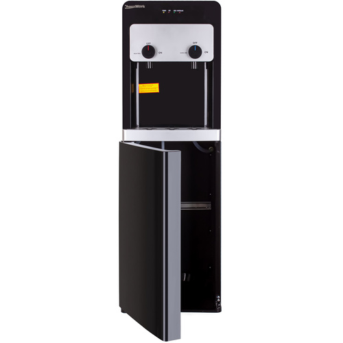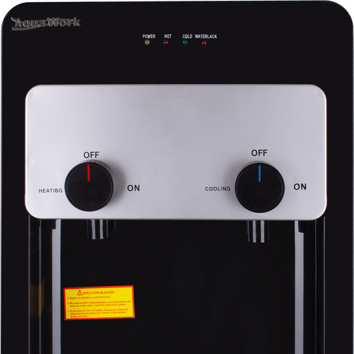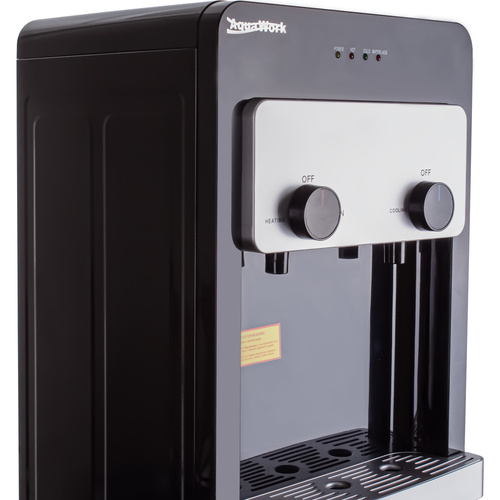 Напольный кулер Aqua Work 43-LDS с нагревом и электронной системой охлаждения обеспечивает быстрый доступ к горячей и холодной воде. Его главное удобство — нижняя установка бутыли, что делает замену емкости простой и безопасной.