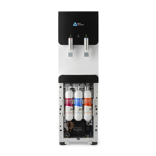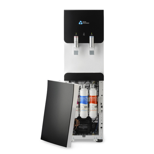 Имеется система непорционного получения воды.Панель индикации работы систем охлаждения, нагревания.