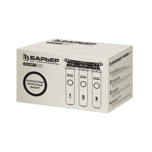 3 ступень — БАРЬЕР ЭКСПЕРТ Карбон-блок. Осуществляет финишную очистку и кондиционирование, устраняет хлор и неприятные привкусы.