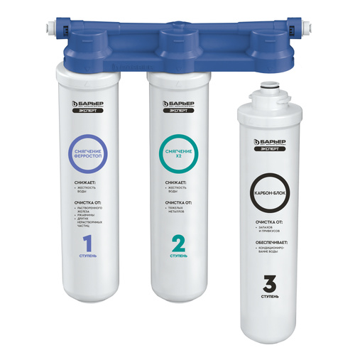 3 ступень — БАРЬЕР ЭКСПЕРТ Карбон-Блок. Убирает остаточные соединения хлора, кондиционирует воду и улучшает вкусовые свойства.