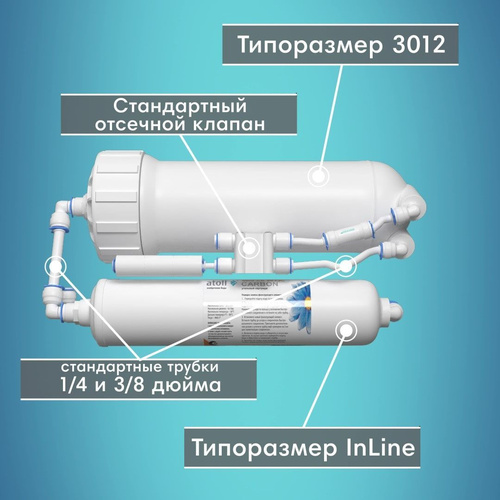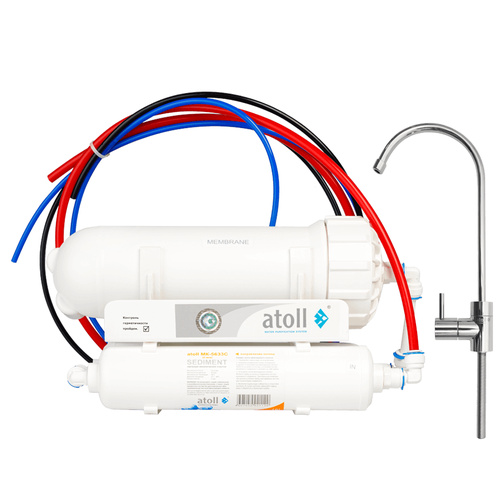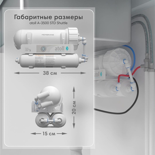 Прямоточный фильтр - atoll ShuttleA-3800 STDA относится к категории сверхкомпактных бытовых фильтров обратного осмоса прямоточного типа (работает без накопительного бака).
