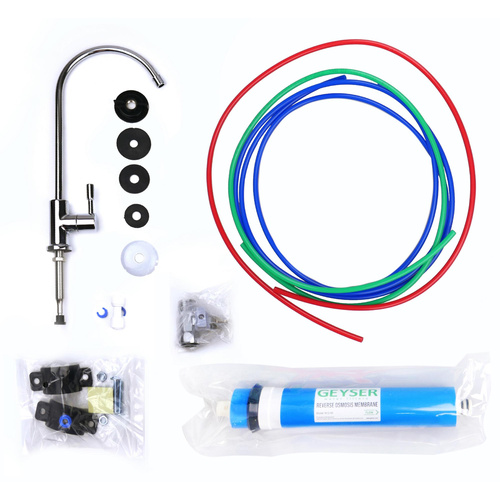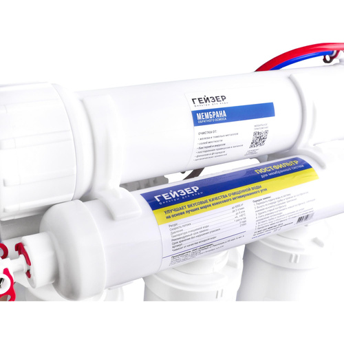 Мембрана обратного осмоса (50 GPD) – выполняет сверхтонкую очистку от солей жесткости, железа, тяжелых металлов, бактерий, вирусов, ядохимикатов, нитритов, радионуклидов, микропластика и др. примесей размером свыше 0,0001 мкм