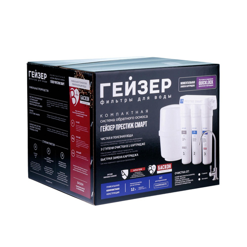 ЭТАПЫ ОЧИСТКИ ВОДЫ СИСТЕМОЙ ОБРАТНОГО ОСМОСА ГЕЙЗЕР ПРЕСТИЖ СМАРТ АНТИБОР: