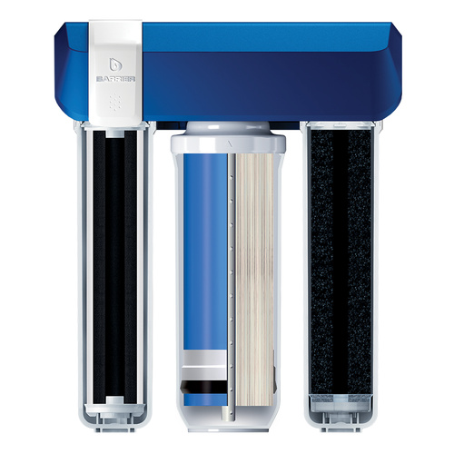 Первый безбаковый осмос БАРЬЕР в компактных размерах с рекордной производительностью. Очищает воду на 100%, удаляя все примеси, соли жесткости — причину накипи, а также бактерии и вирусы. Подходит для доочистки как после городского водопровода, так и после коттеджной системы. Производительность фильтра — 1,6 л/мин, ресурс — 18 000 литров. Рабочее давление — от 0,5 до 4 атм.