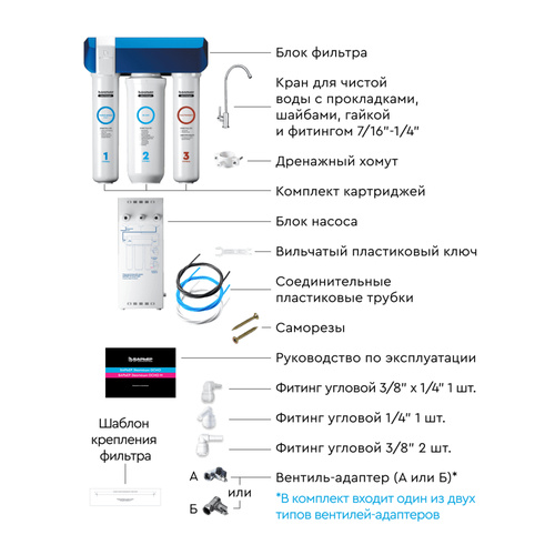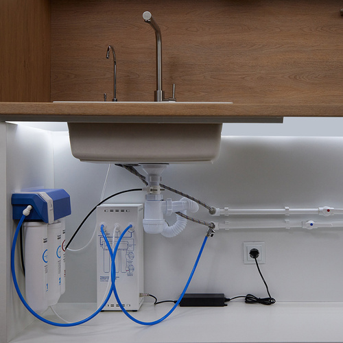 Для работы насоса необходимо наличие розетки в зоне установки фильтра. Использование электрических удлинителей в пространстве под мойкой запрещается.