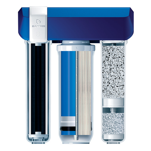 Первый безбаковый осмос БАРЬЕР с рекордной производительностью. Очищает воду на 100%, удаляя все примеси, соли жесткости — причину накипи, а также бактерии и вирусы. Дополнительно обогащает воду полезными минералами — магнием, кальцием и кремнием. Подходит для доочистки как после городского водопровода, так и после коттеджной системы. Производительность фильтра — 1,6 л/мин, ресурс — 18 000 литров. Рабочее давление — от 0,5 до 4 атм.