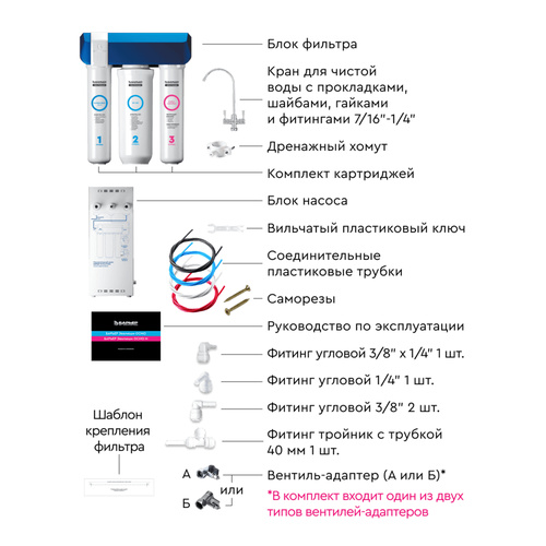Для работы насоса необходимо наличие розетки в зоне установки фильтра. Использование электрических удлинителей в пространстве под мойкой запрещается.