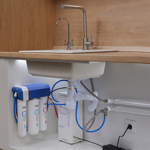 За счет установки фильтра за водосчетчиком после запорных клапанов, техническое обслуживание устройства проводится без демонтажа.